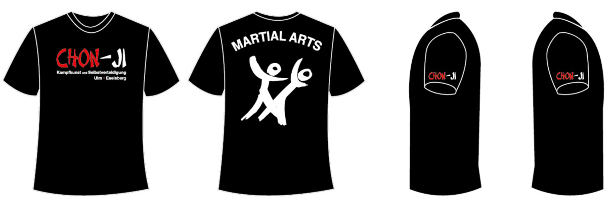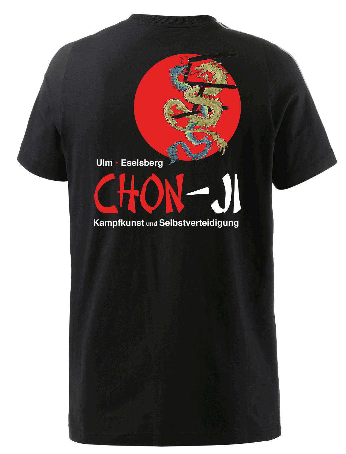 mit Stickerei am Rücken, Chon-Ji-Schriftzug (Sticker) auf beiden Ärmeln und Chon-Ji-Logo (Sticker, klein)